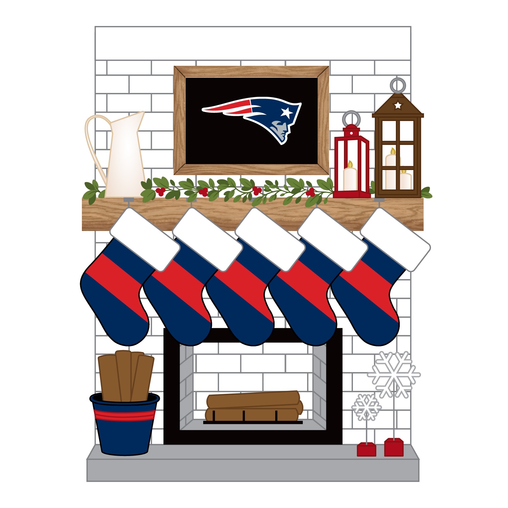 NFL-NE 2030-5-New England Patriots Personalized Stocking Family of 5 Ornament