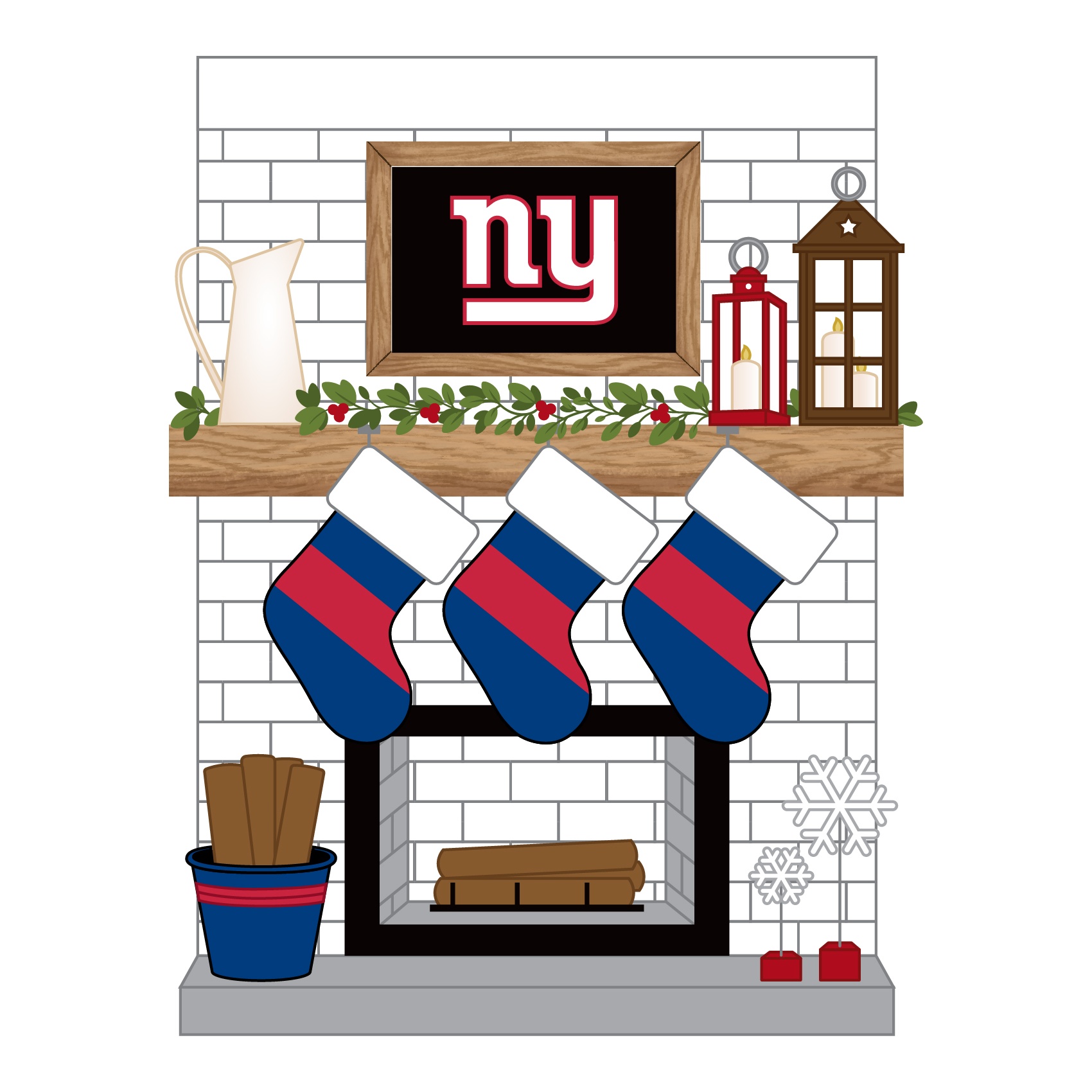 NFL-NYG 2030-3-New York Giants Personalized Stocking Family of 3 Ornament