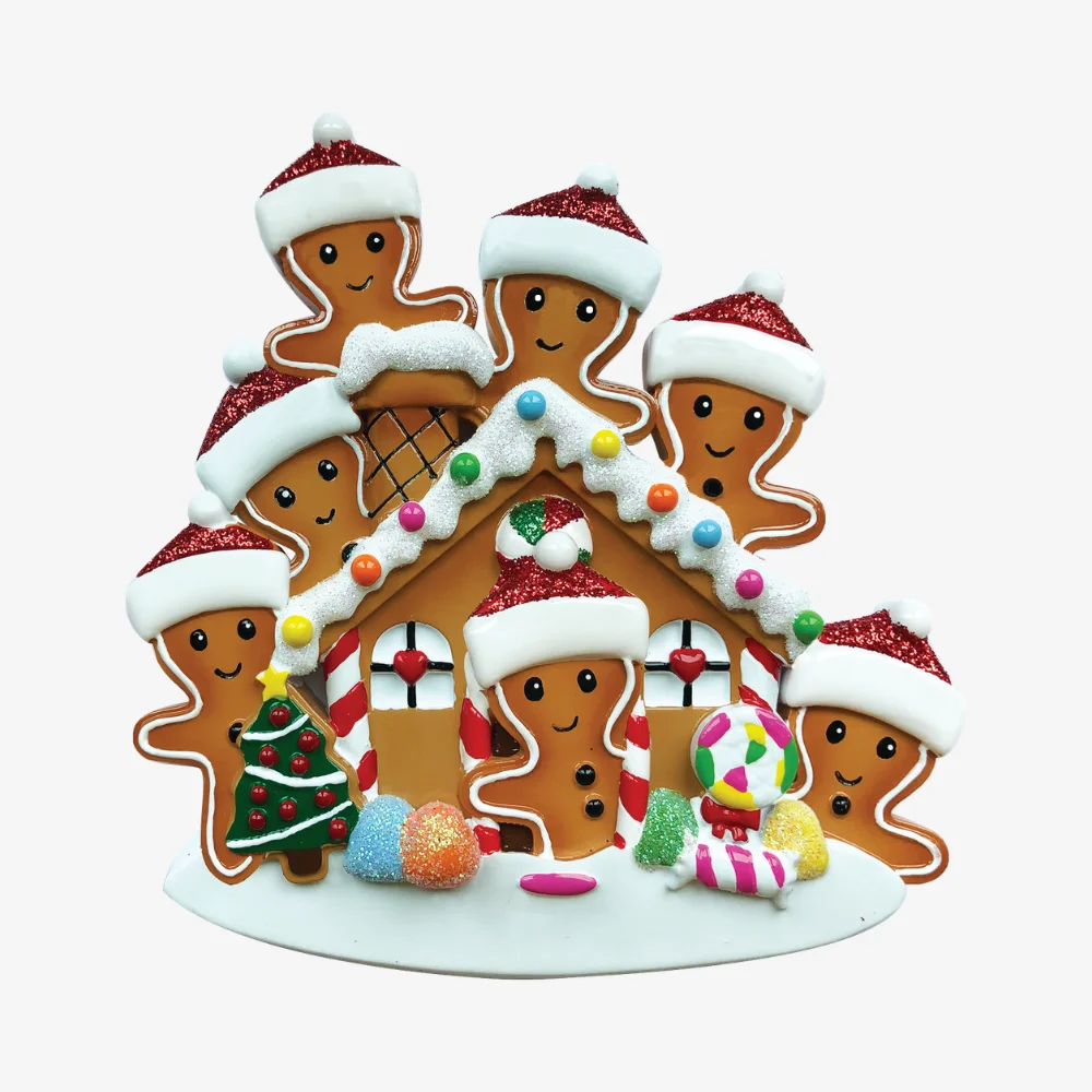 OR1872-7 – Gingerbread House Family of 7 Personalized Christmas Ornament