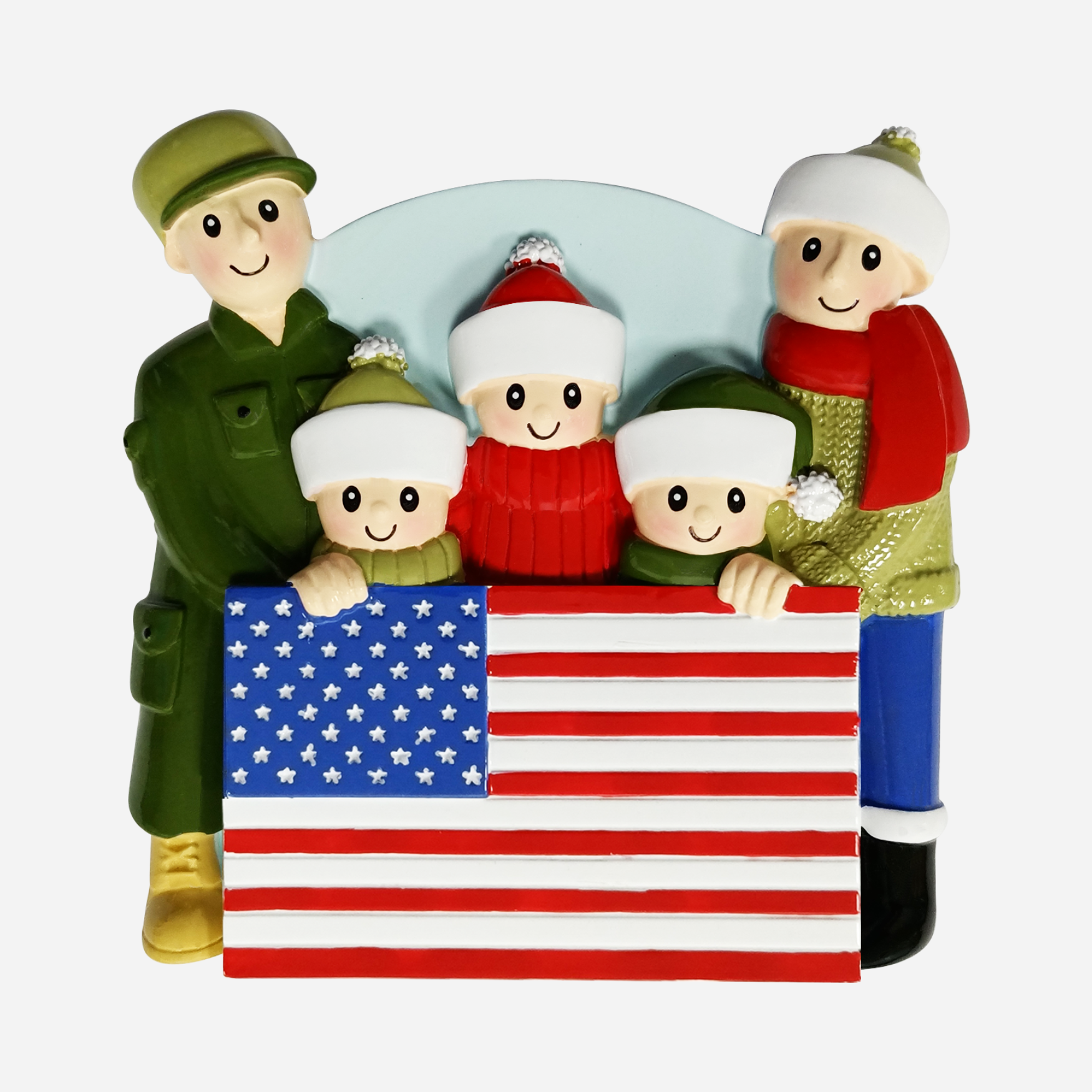 OR2259-5 – Patriotic Family of 5 Personalized Christmas Ornament