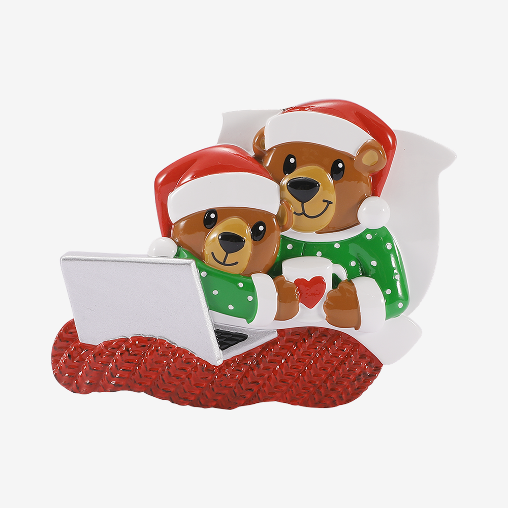 OR3105- Couples- Bear Couple with Caps Snuggled in Bed