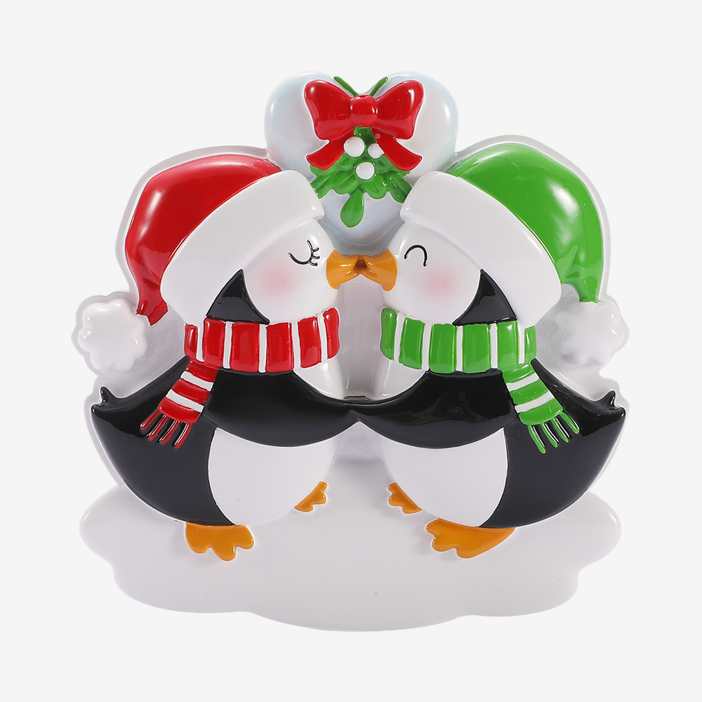 OR3106- Couples- Cute Mistletoe with Kissing Penguins