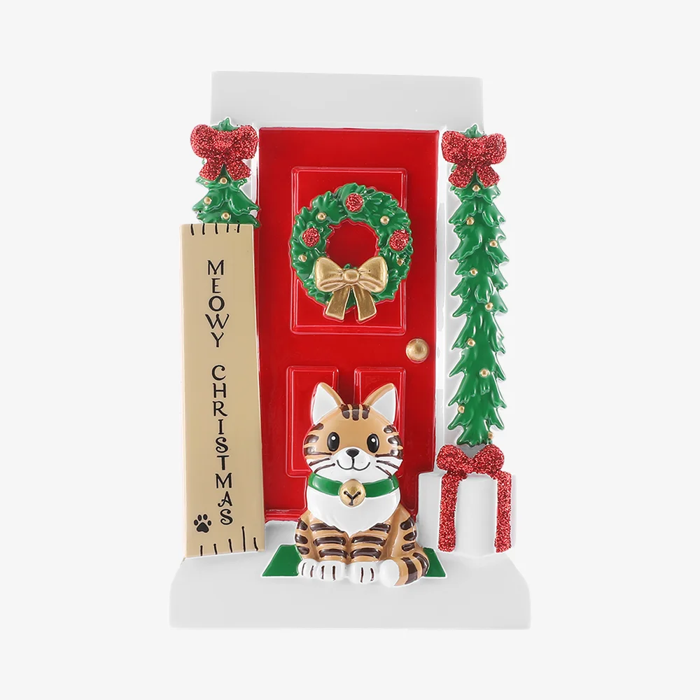 OR3182- Home- Meowy Christmas Wall Sign Door with Cat