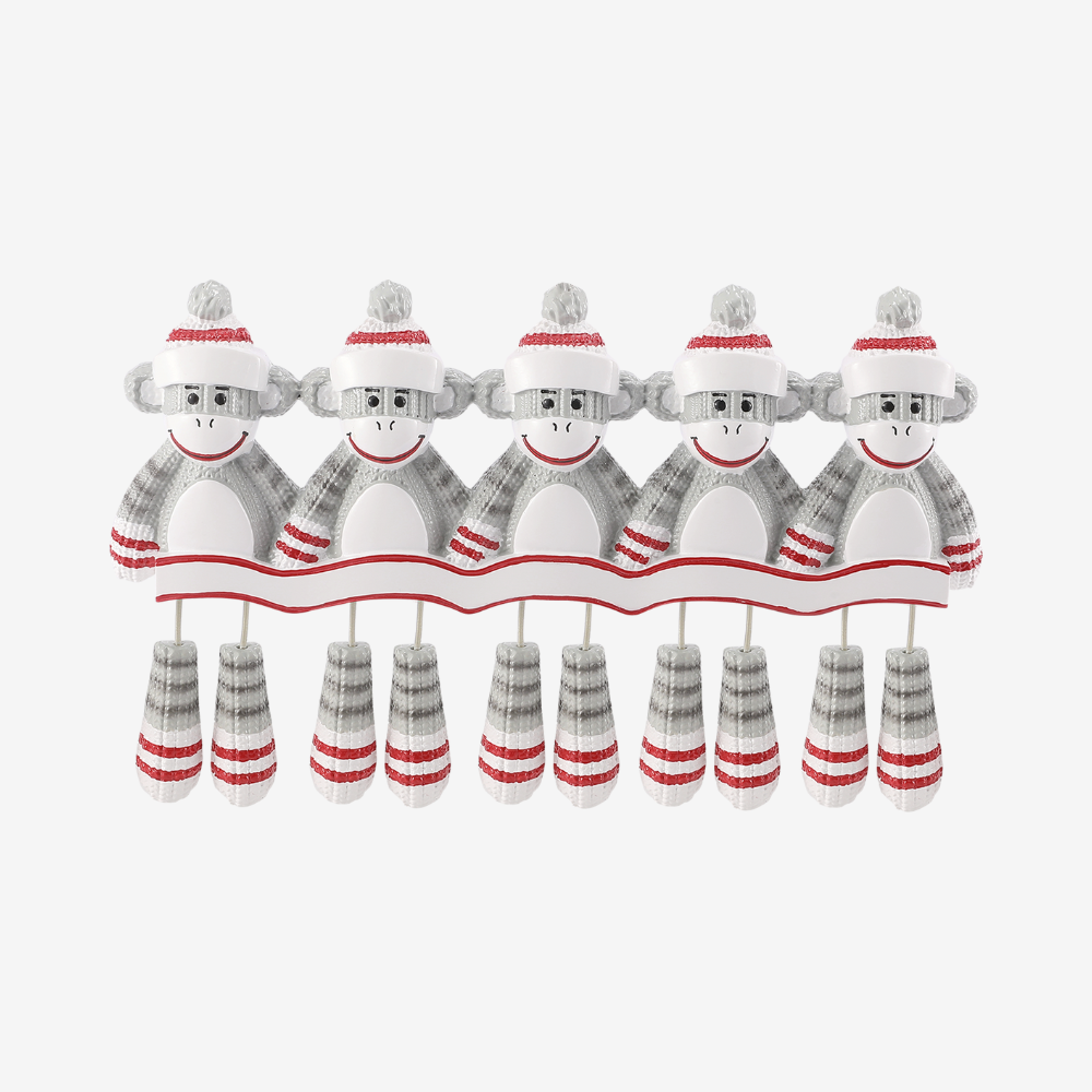 OR928-5 – Sock Monkey (Family of 5) Personalized Christmas Ornament