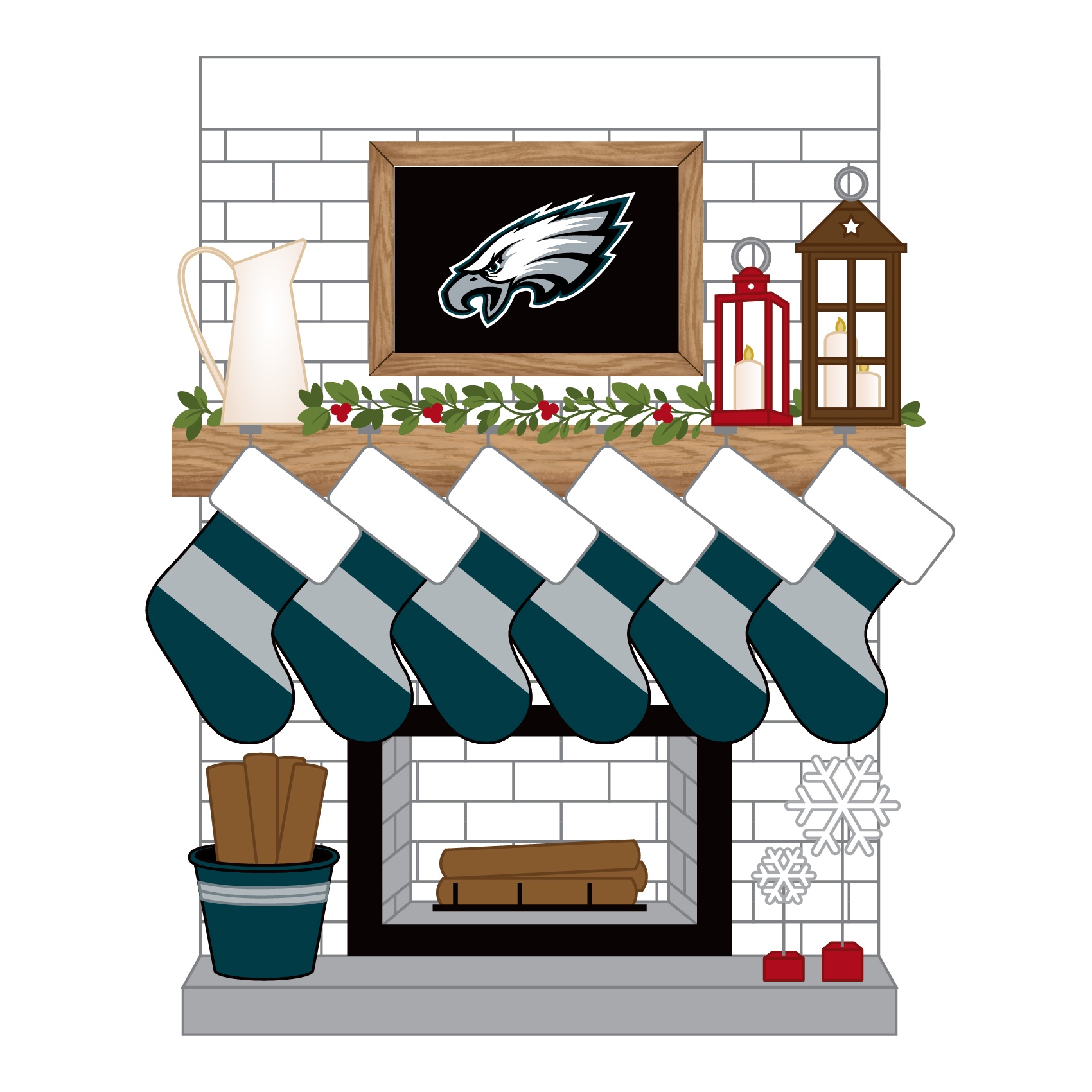 NFL-PHI 2030-6-Philadelphia Eagles Personalized Stocking Family of 6 Ornament