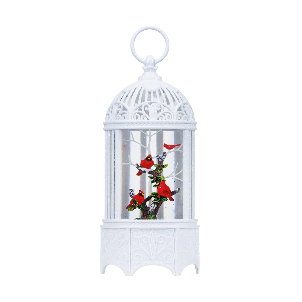 SG19034- 10.25″H LED Cardinals in Bird Cage Plastic Water Globe Glitter Spinner
