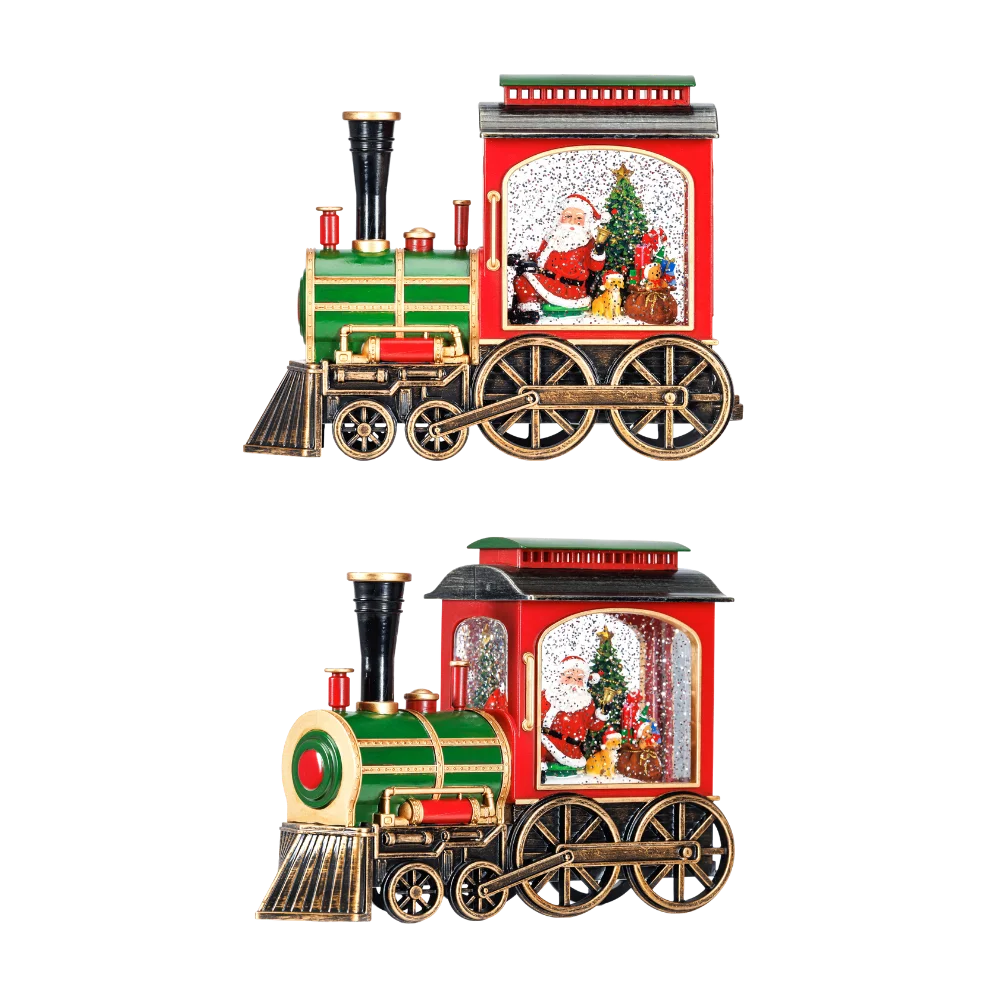 SG23161- 7.75″H x 9.5″ x 3″ LED Santa & Xmas Tree in Train Plastic Water Globe Glitter Spinner