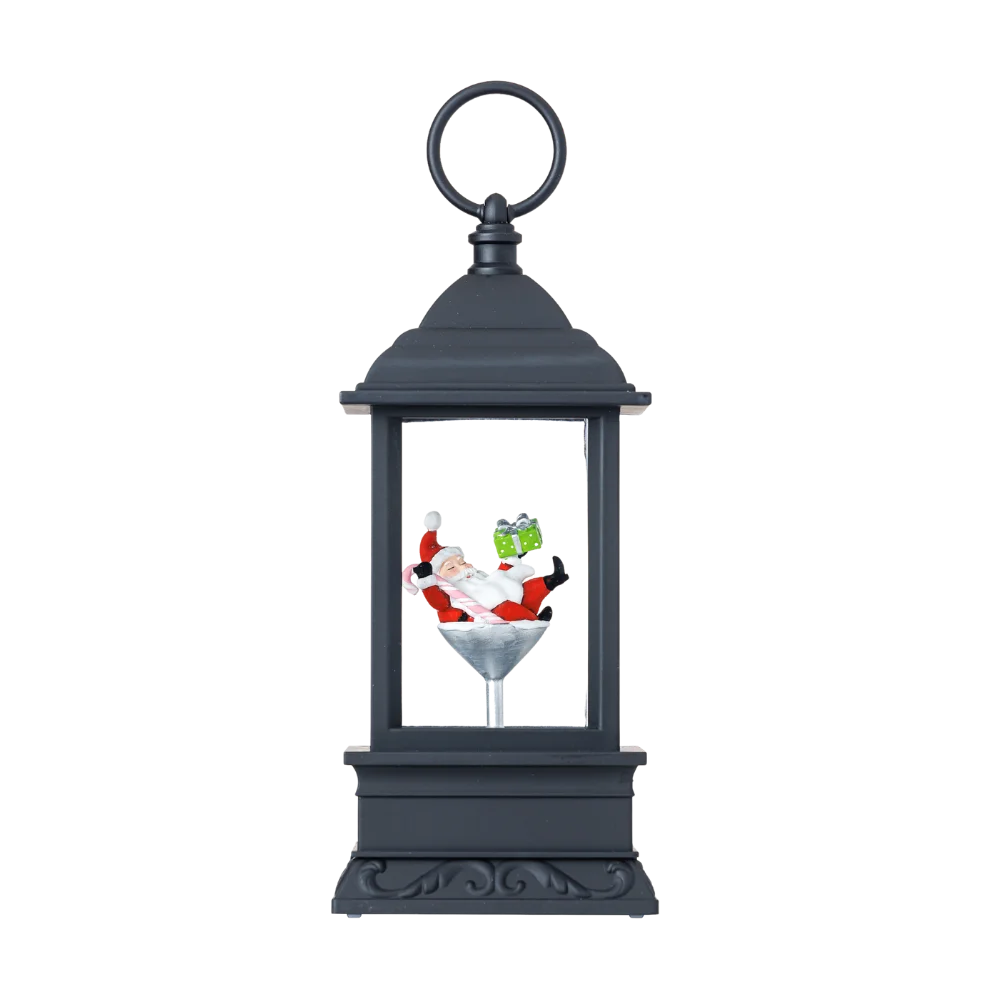 SG24003- 9″H LED Santa Martini Cup Plastic Water Globe Lantern Glitter Spinner