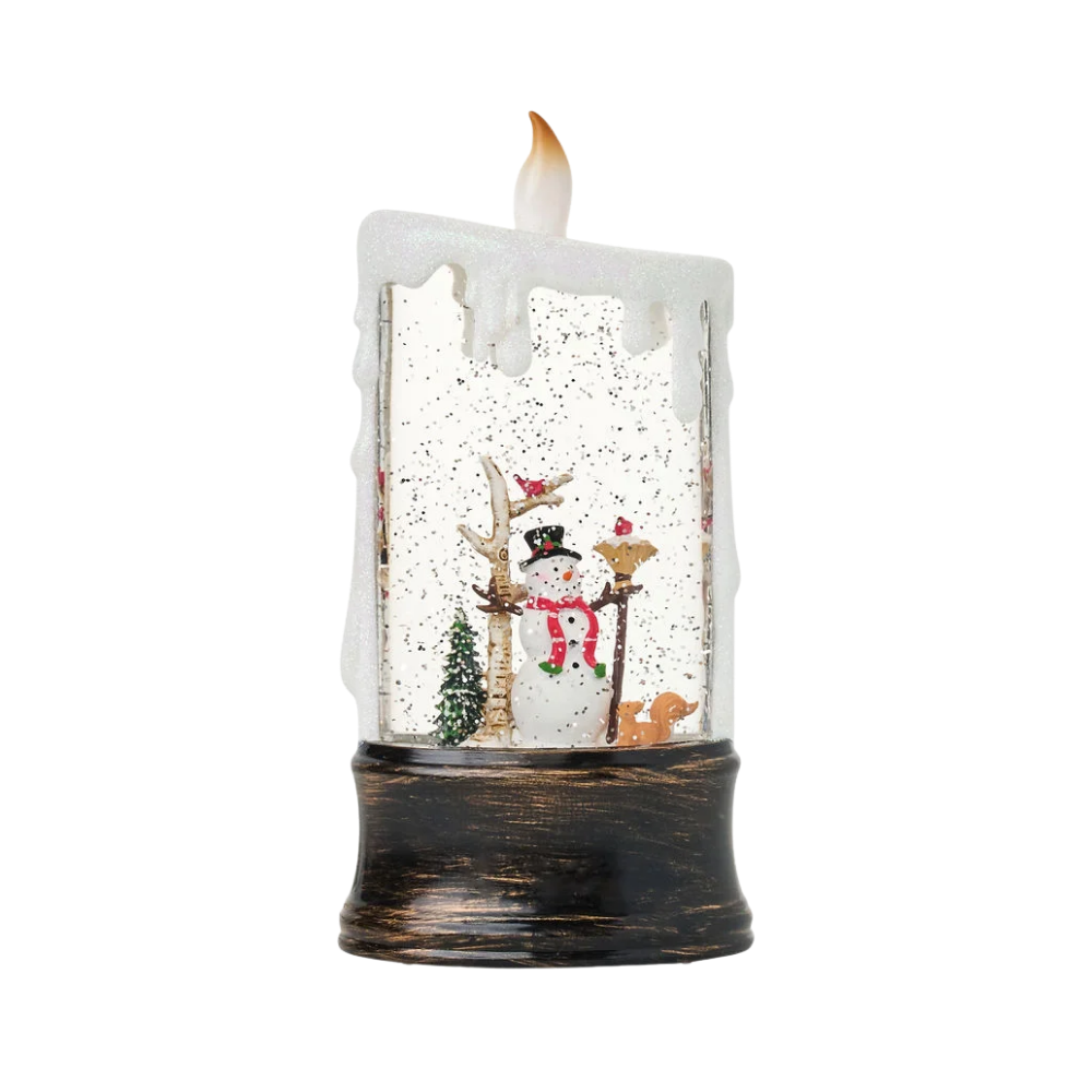 SG24031 Snow Globes- 10″H LED Snowman in Candle Water Globe Lantern Glitter Spinning