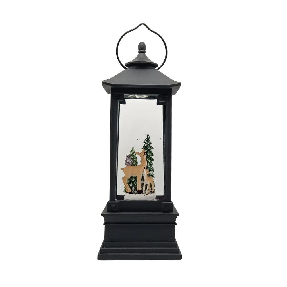 SG23VCP135 Snow Globes -11.25″ H LED Deer with Trees Bronze Water Lantern