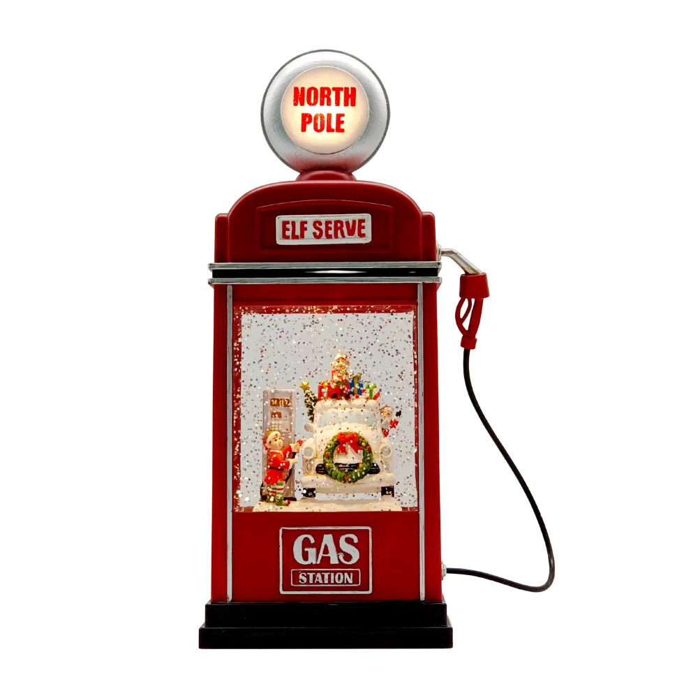 SG23004 Snow Globes- 11.5″H LED GAS PUMP WHITE TRUCK WATER LANTERN