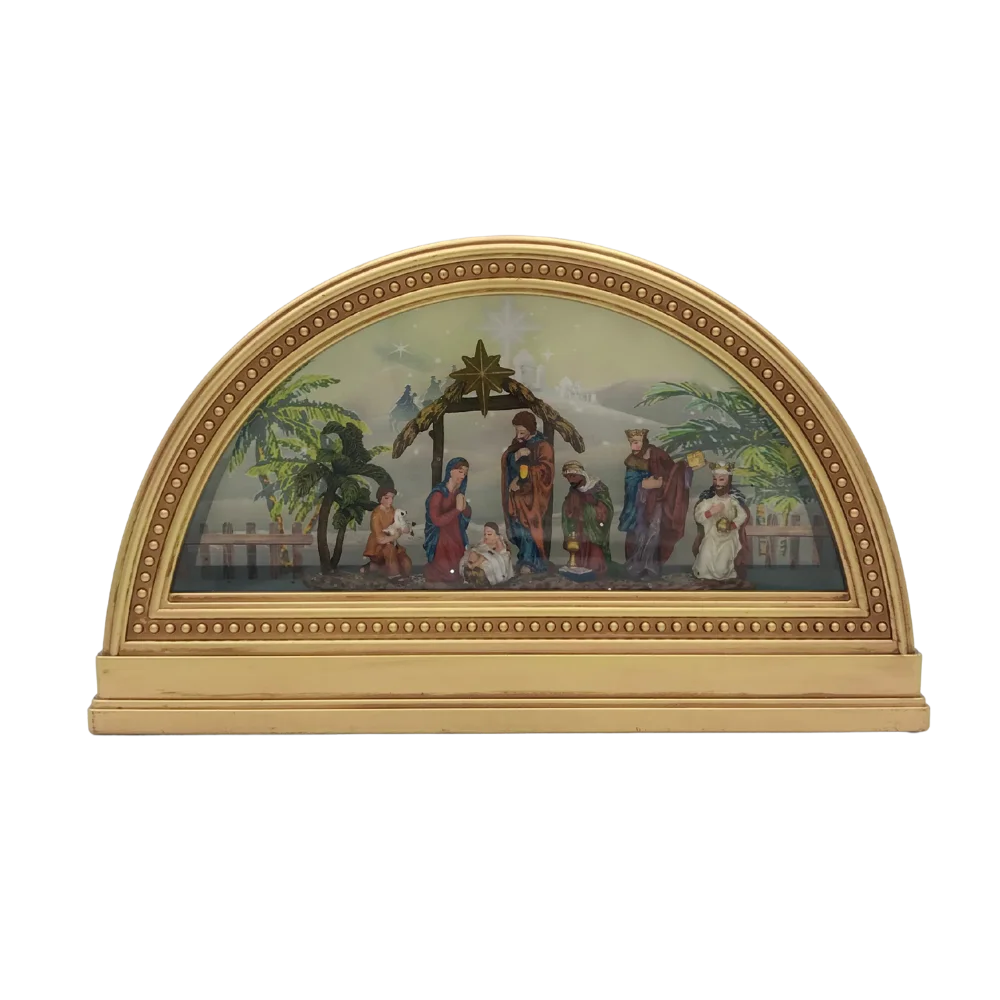 SG23VCP194 Snow Globes – LED Nativity Scene on Gold Base Water Lantern