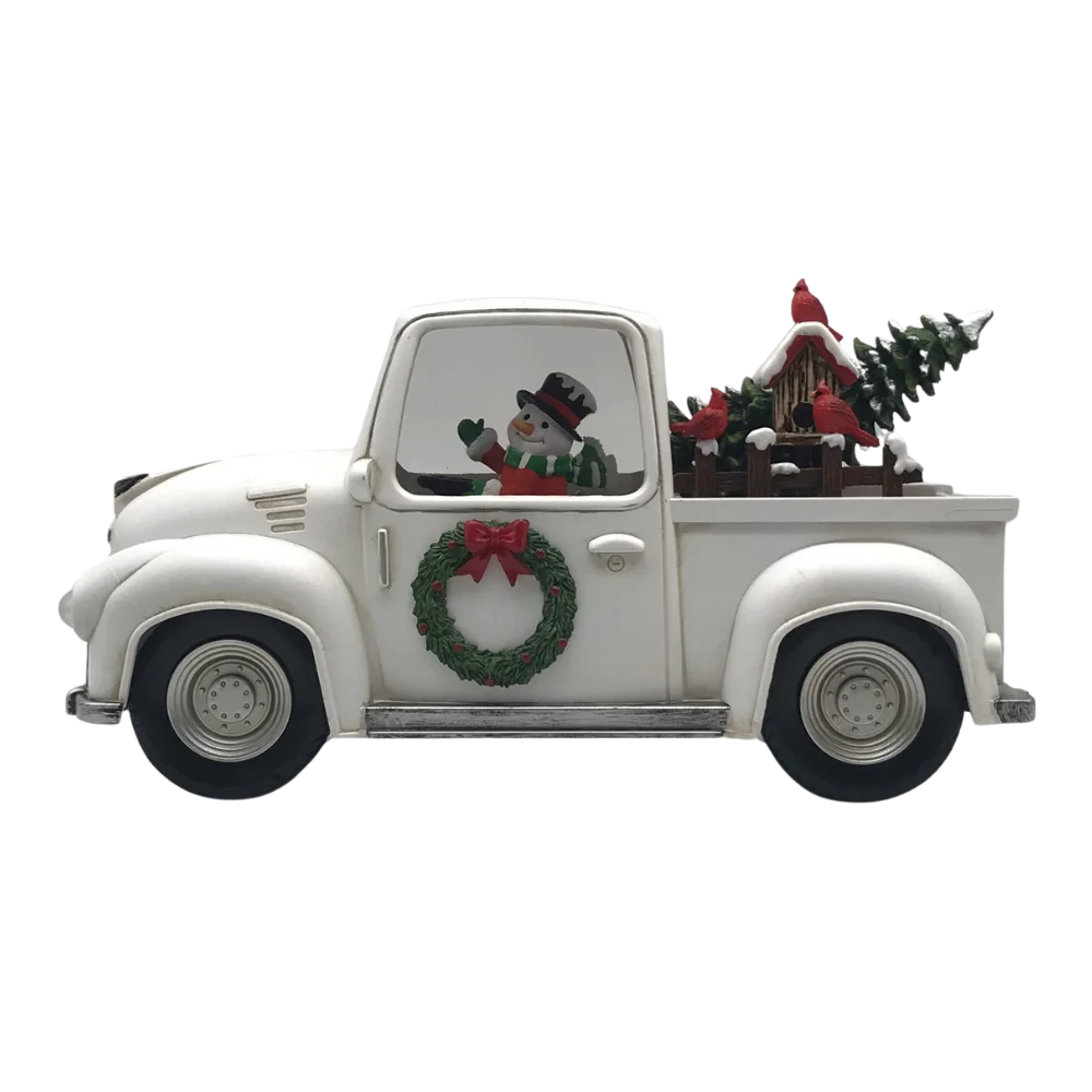 SG23VCP202 Snow Globes – LED White Truck with Snowman Water Lantern
